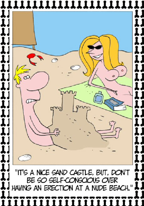 Nav pieņemts nūdistu pludmalē stāvēt ar saslējušos locekli. Pastāv iespēja apgulties uz vēdera un pievērst domas kam filozofiskākam.